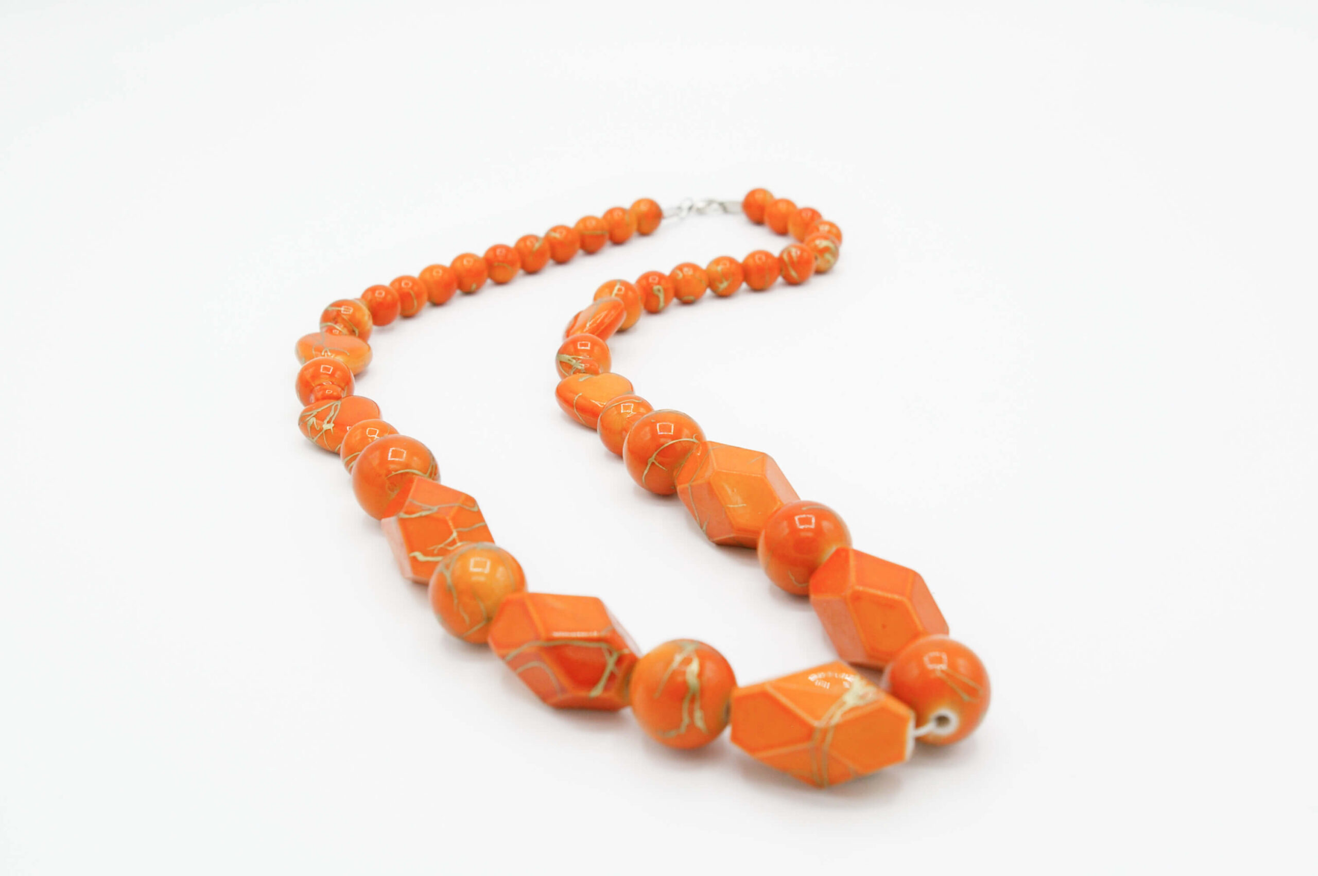Collar de mujer HERA, collar largo de piedras, color naranja tigre con destellos dibujados dorados.